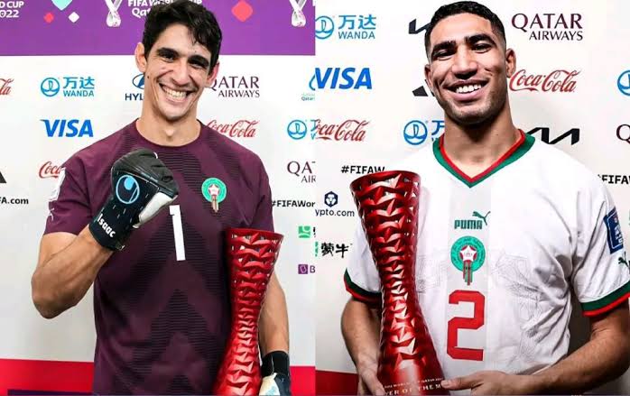 وحضر المغرب بقوة في هذه القائمة من خلال الثنائي ياسين بونو، المرشح لجائزة أفضل حارس مرمى، وأشرف حكيمي الذي يتنافس على جائزتي أفضل مدافع وأفضل لاعب في العالم، اعترافا بالمردود الكبير الذي قدماه سواء مع المنتخب الوطني أو أنديتهما خلال الموسم الرياضي الحالي.